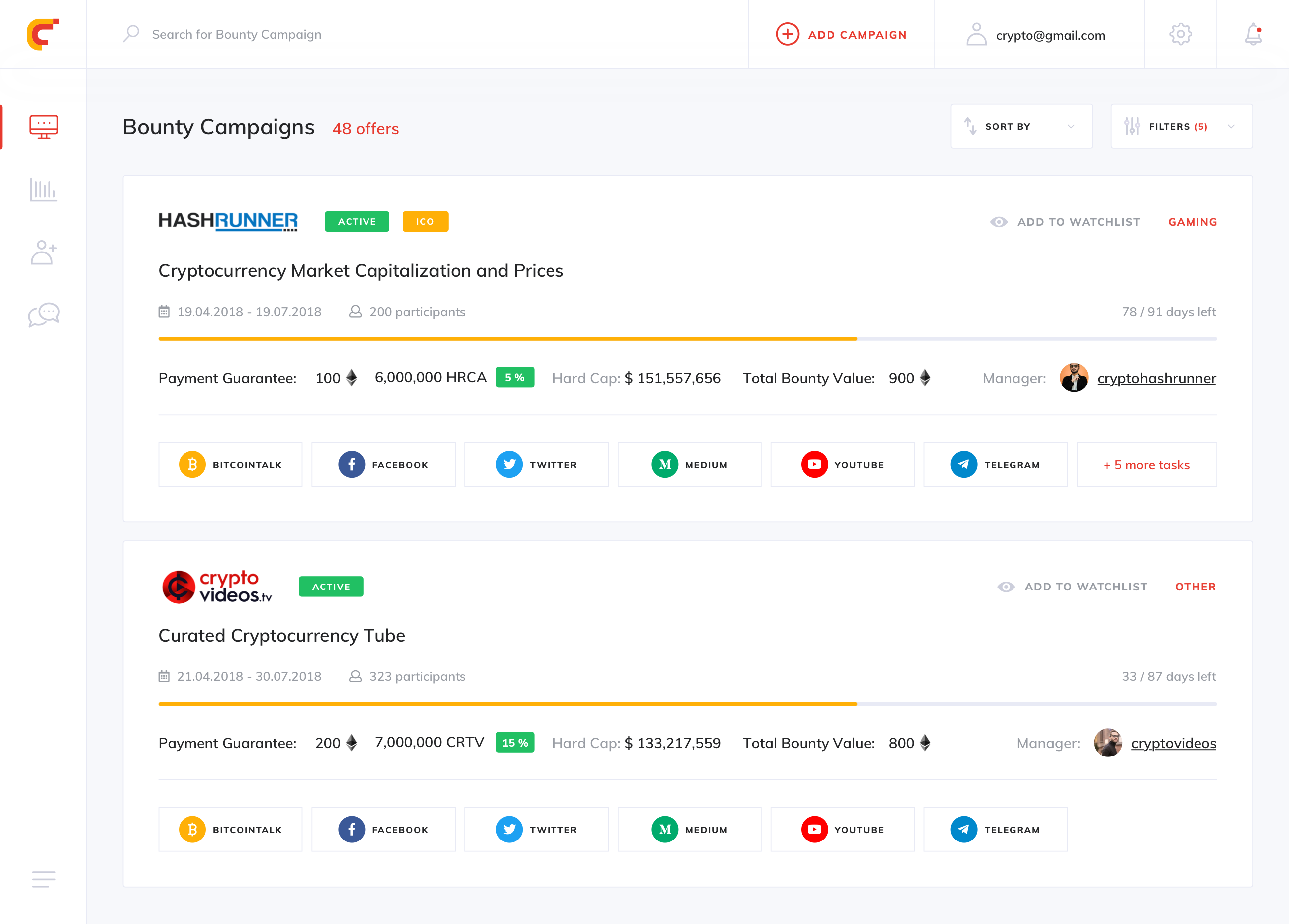 Bounty manager: any individual or entity who connect Projects or ICOs and bounty hunters, who check and monitors
